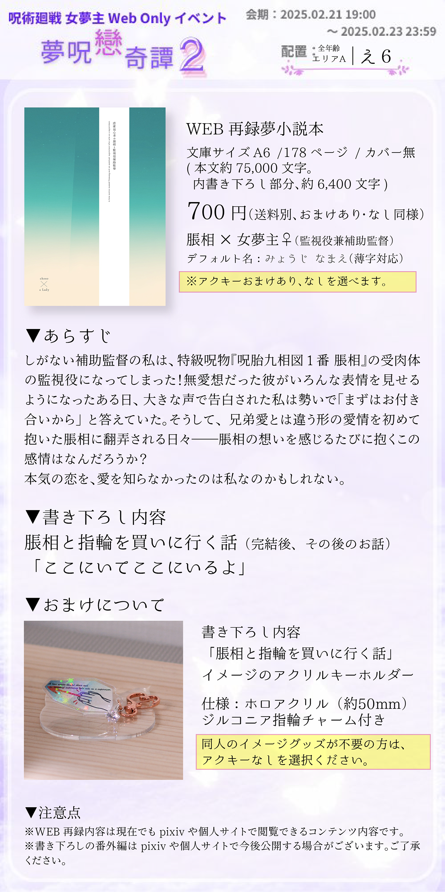 あと、一応脹相夢に時系列と季節感を考えて書いていたので、混乱しないようにという理由があります。